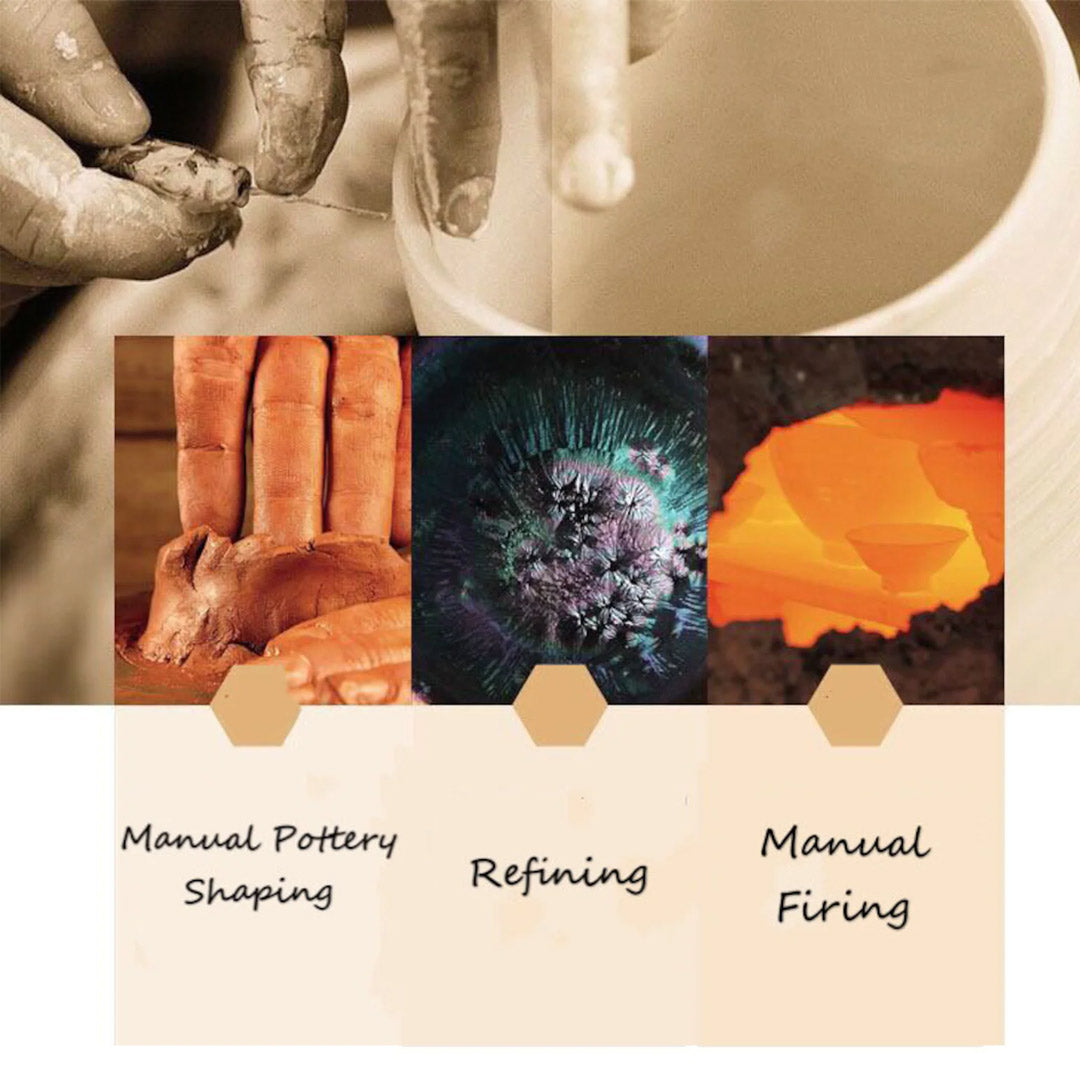 ** Due to the handmade and manual firing process, there can be slight differences in color (i.e. the coverage of the rustic area or the glaze) for individual cups.