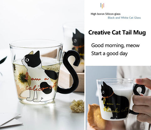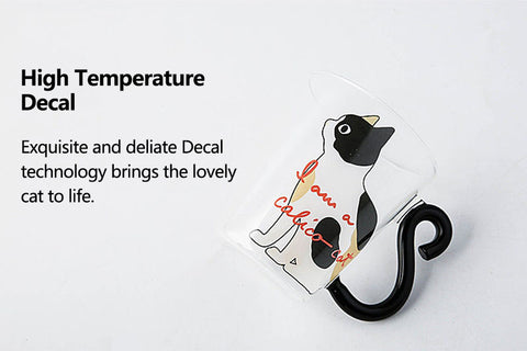 The transparent and bright high borosilicate glass material, with a cute cat decal pattern, plus the handle designed by the cat's tail, is full of childlike interest.