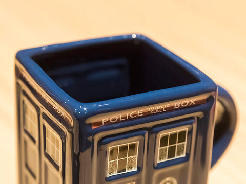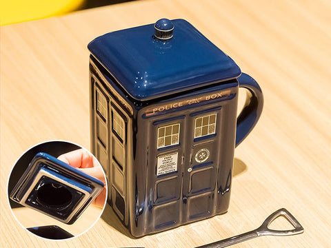 A certain doctor's preferred mode of time travel is often a vintage police call box, thus the inspiration for this coffee mug. Ceramic mugs feature lids that keep hot drinks warm between sips. Science fiction fans will love this, and it is suitable for coffee, tea, or hot chocolate.