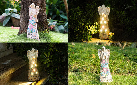 Each garden statue and figurine is hand-painted with vibrant colors and the light is waterproof, and every part is made of long-lasting resin and hand-painted with UV-resistant paint, making garden angels outdoor statues solid and lasting.