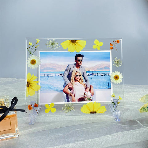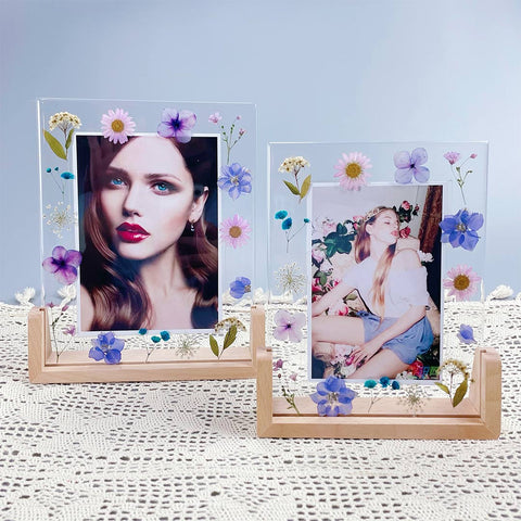 Wir verwenden getrocknete Blumen, die langlebig sind, um den Rahmen herzustellen.