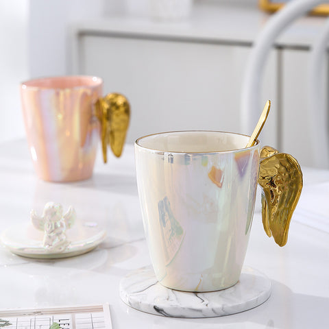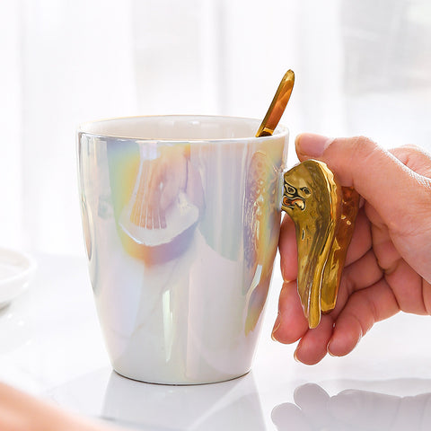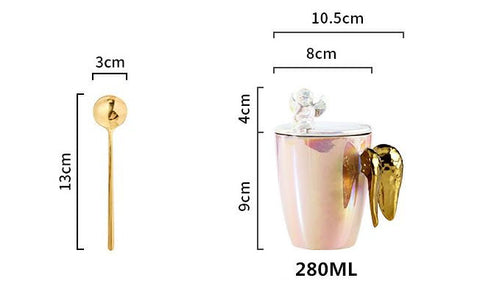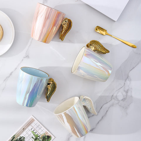 Taza de ala que viene en un acabado de perla holográfica con un asa poco convencional en forma de alas.