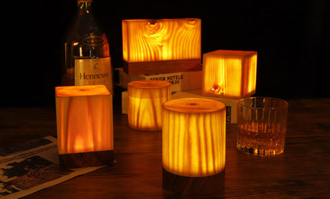 Luz de noche ambiental LED de madera