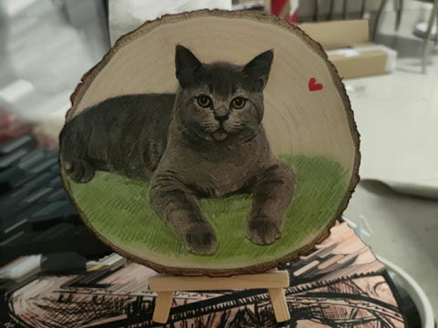 - Adorno personalizado pintado a mano con el retrato de tu mascota. La obra está creada sobre madera. El proceso de pintura es complicado y requiere mucho tiempo. Pintado a mano, no se desvanece fácilmente y se puede almacenar durante mucho tiempo.