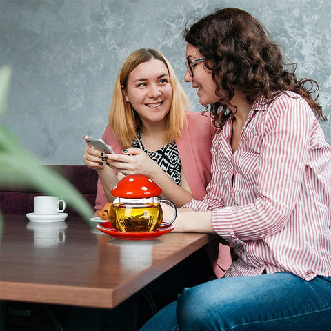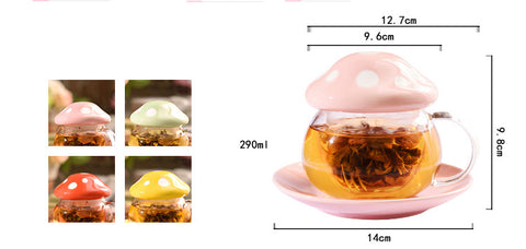 Abito squisito: il pacchetto include 1 tazza di vetro a fungo, 1 infusore, 1 piattino, 1 coperchio.
